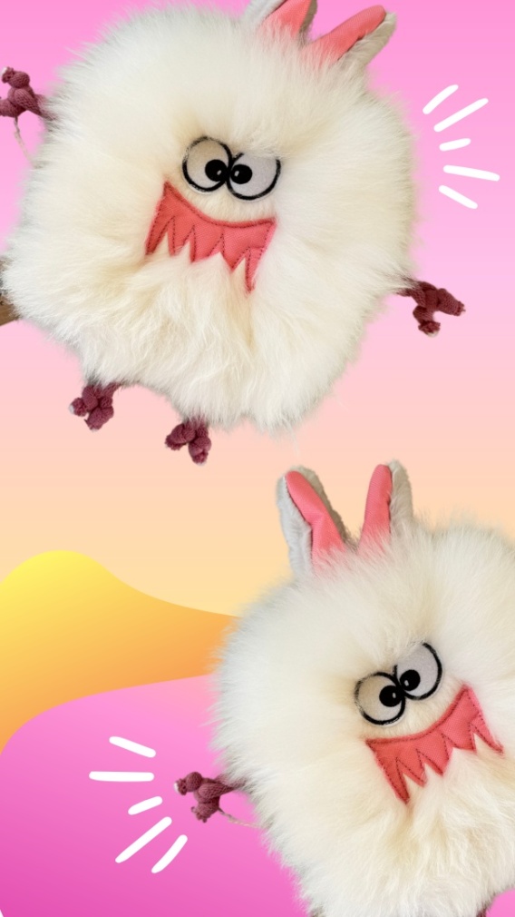 Moonster biały - zabawka ze skóry owczej z piszczałką potworek