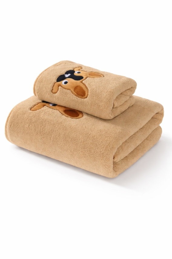 Zestaw beżowych ręczników z haftem pieska